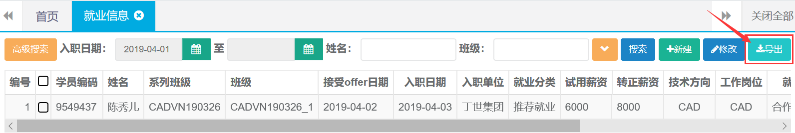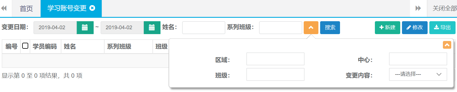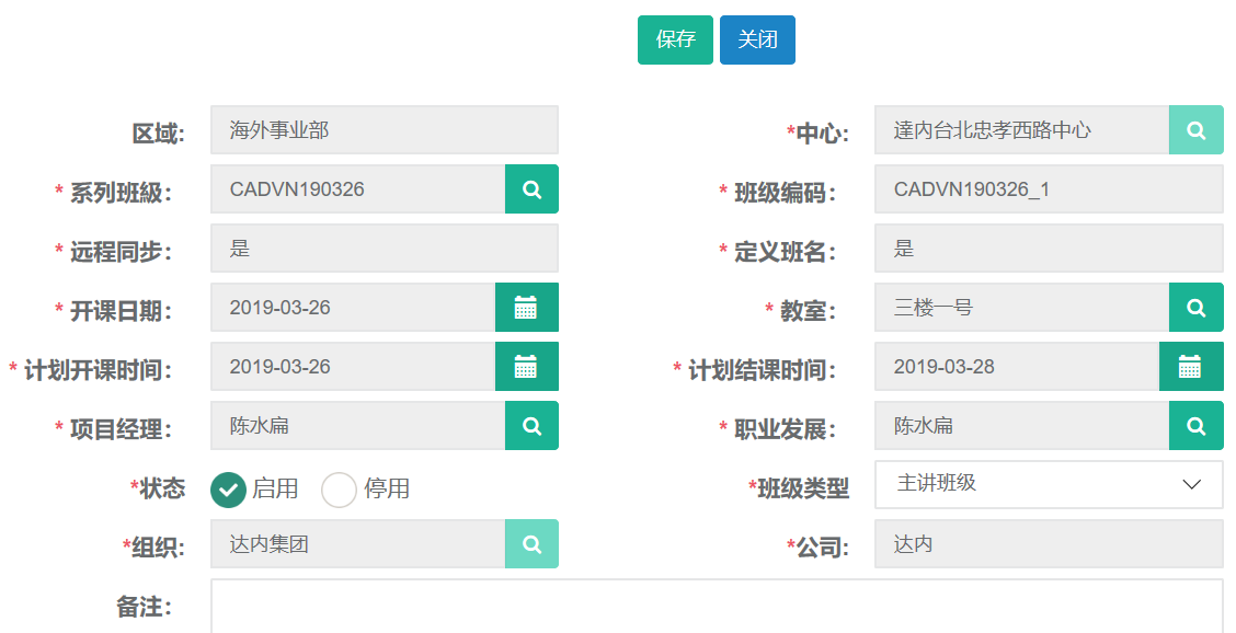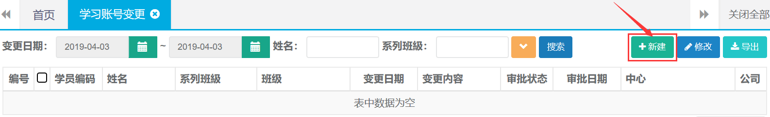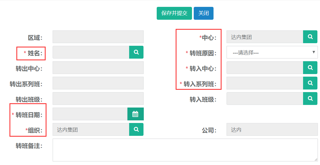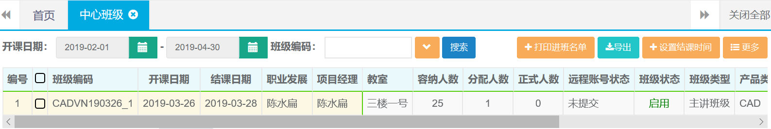 当线下邮件审批流程结束后,在CRM管理系统中选学员异动,进入转班申请,新建一个申请后,选择跨中心转班类型,选择学员需要转入的班级即可