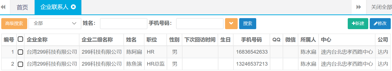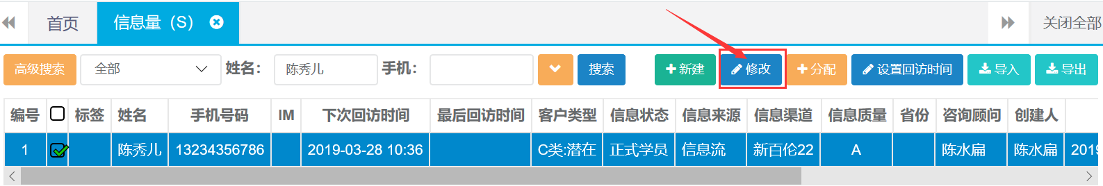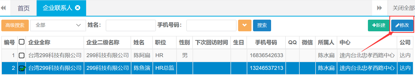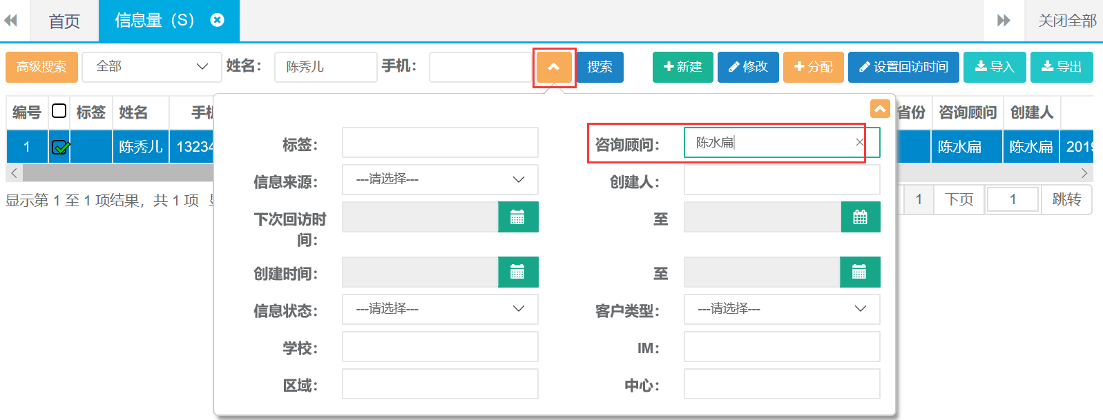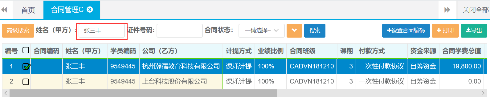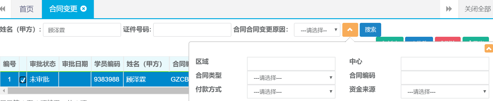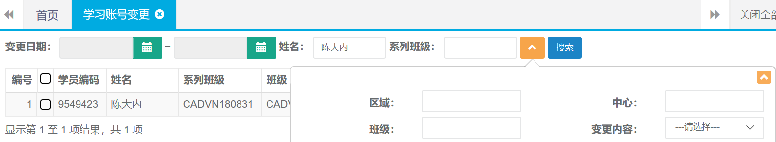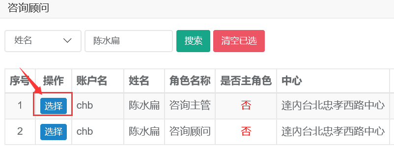 第二步:根据姓名、用户名等条件查询需要注销的CRM账号。选中查询结果,点击右侧