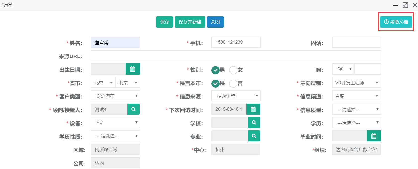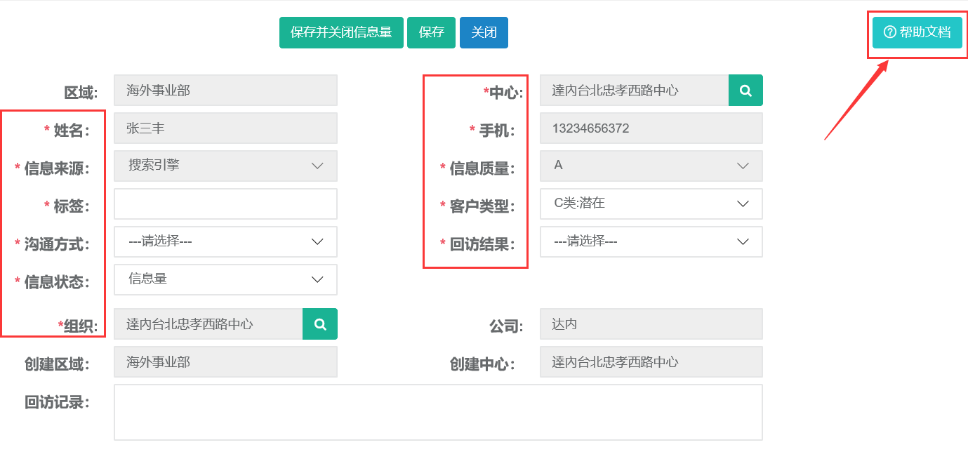 2、CRM帮助文档查阅操作,请参照【线上帮助文档】。