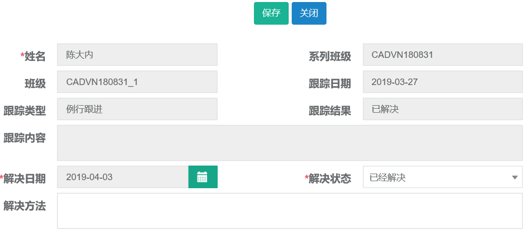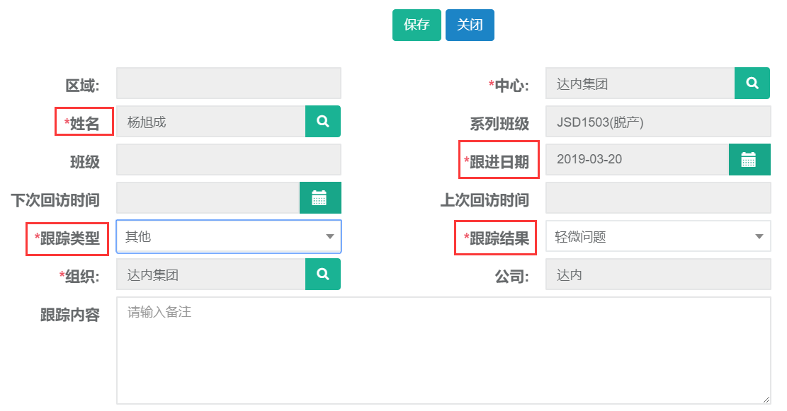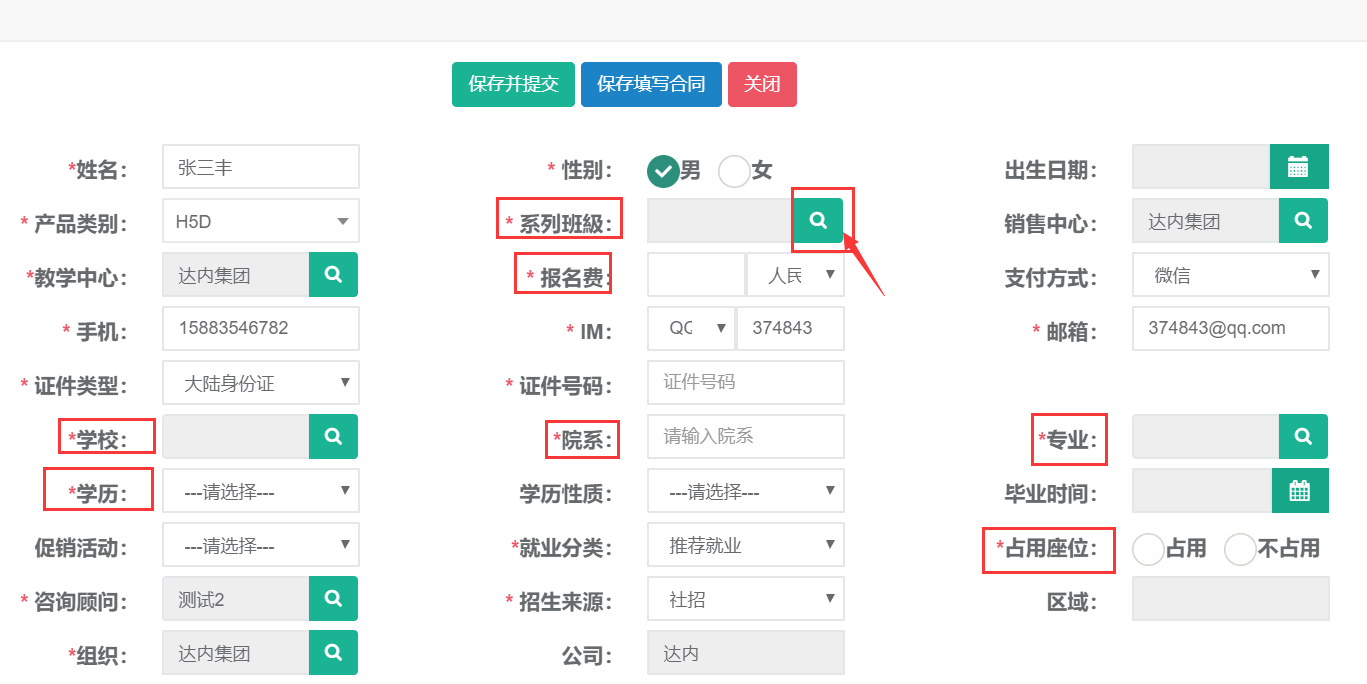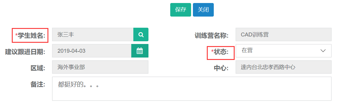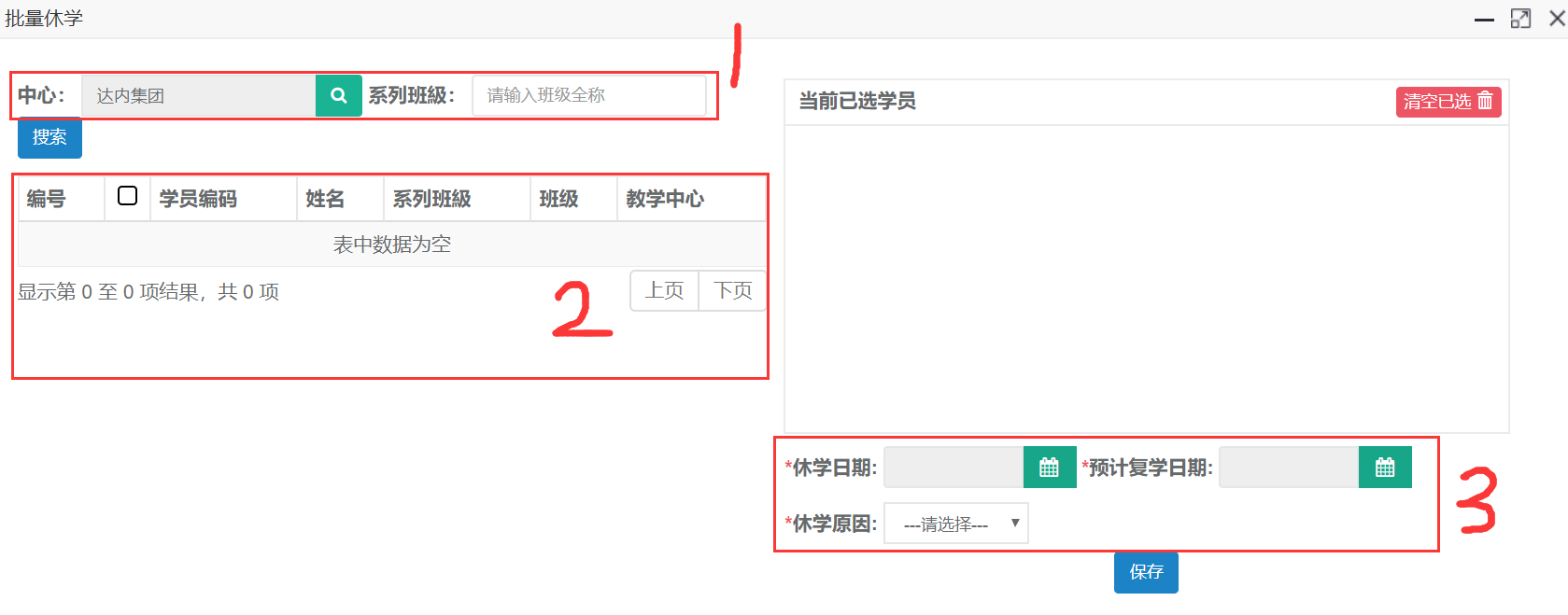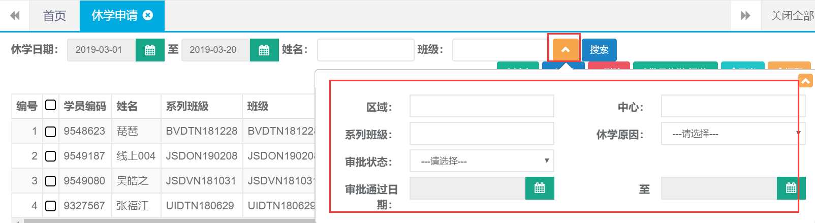 a) 在CRM管理系统中选学员异动,进入休学申请模块,新建一个申请后,在系统中填写休学原因及复学的日期