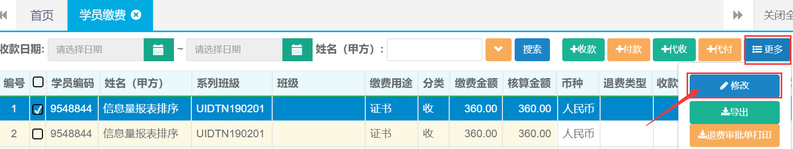 对于缴费合规的学员,当学员需进行异动处理时,职业发展团队要及时进行相应操作,保证财务数据的流转准确,保证日常的教学管理。