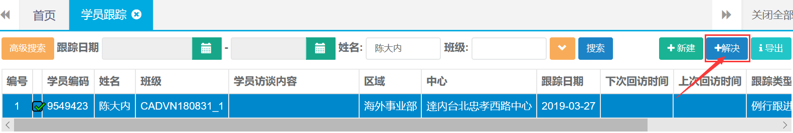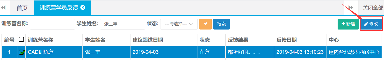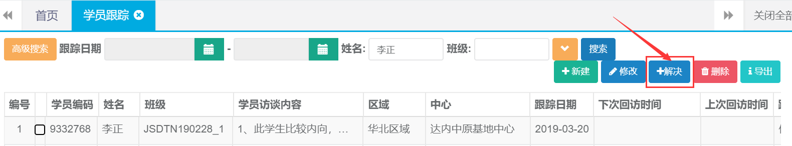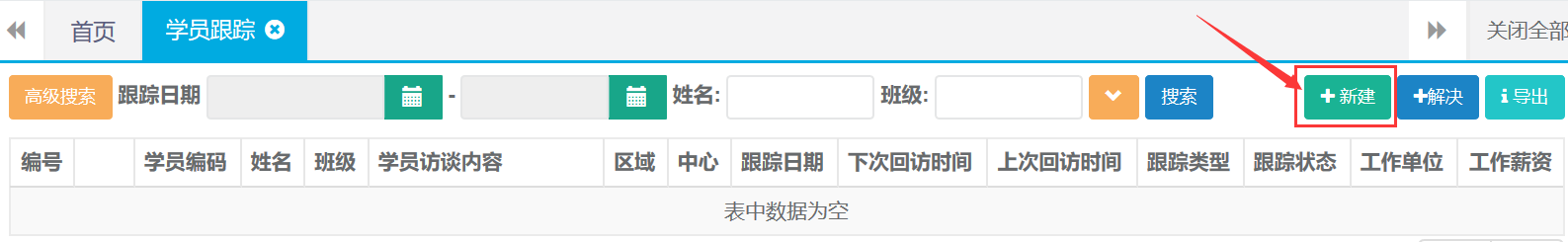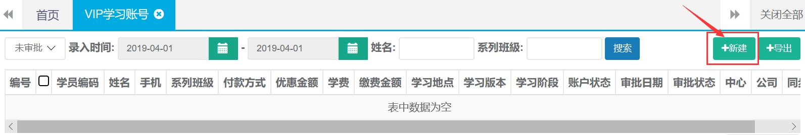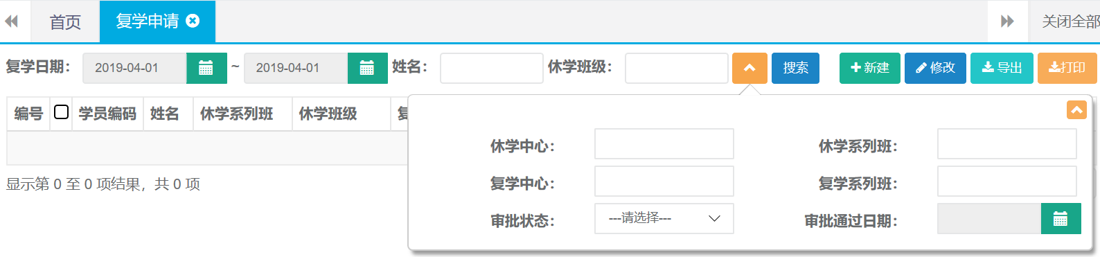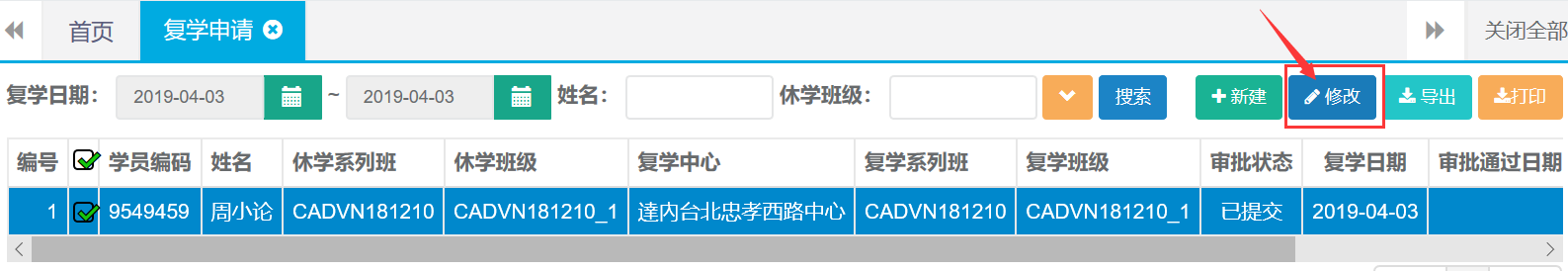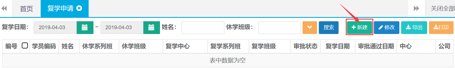 在CRM管理系统中学员异动栏,进入复学申请模块,新建申请,在系统中进行复学操作