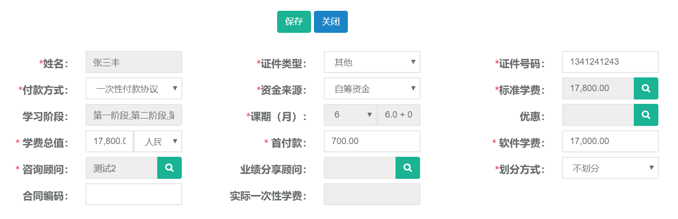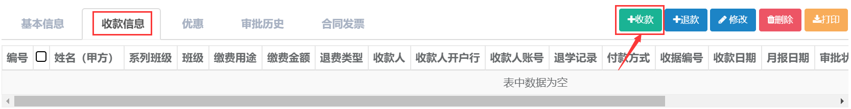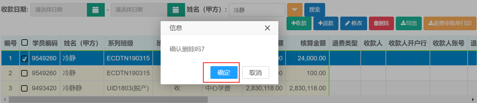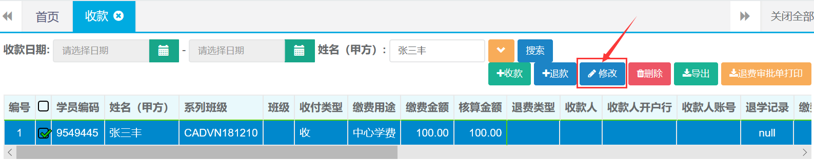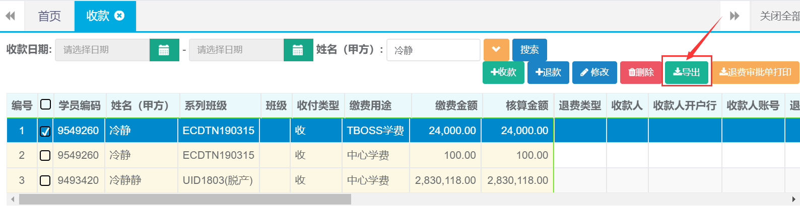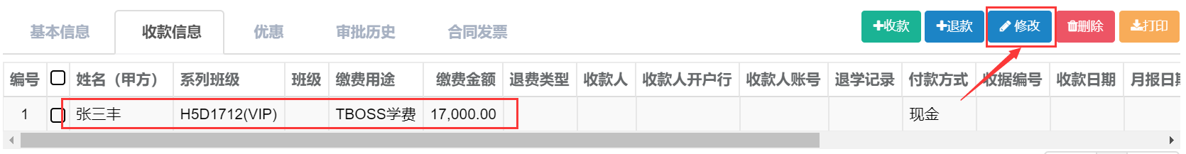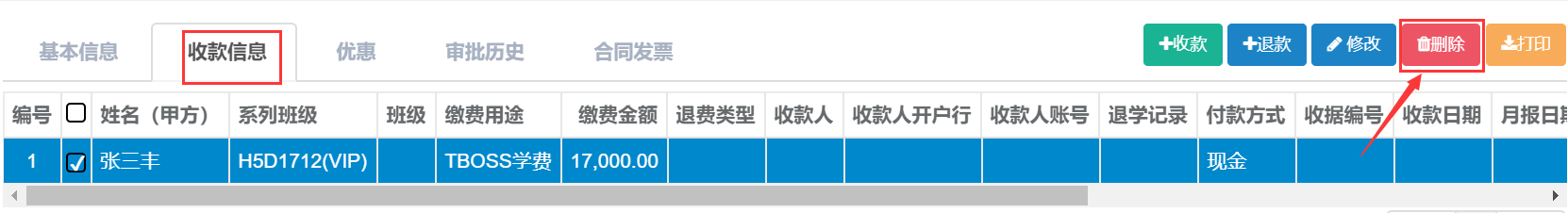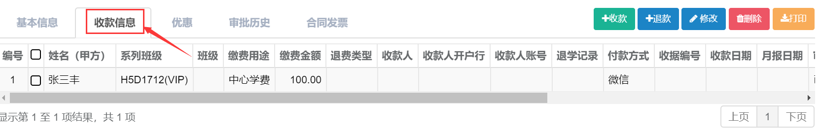 已进班学员系统间信息关联:学员退班信息从CRM同步至NC系统,收入清算,收入确认金额等于收款金额 |