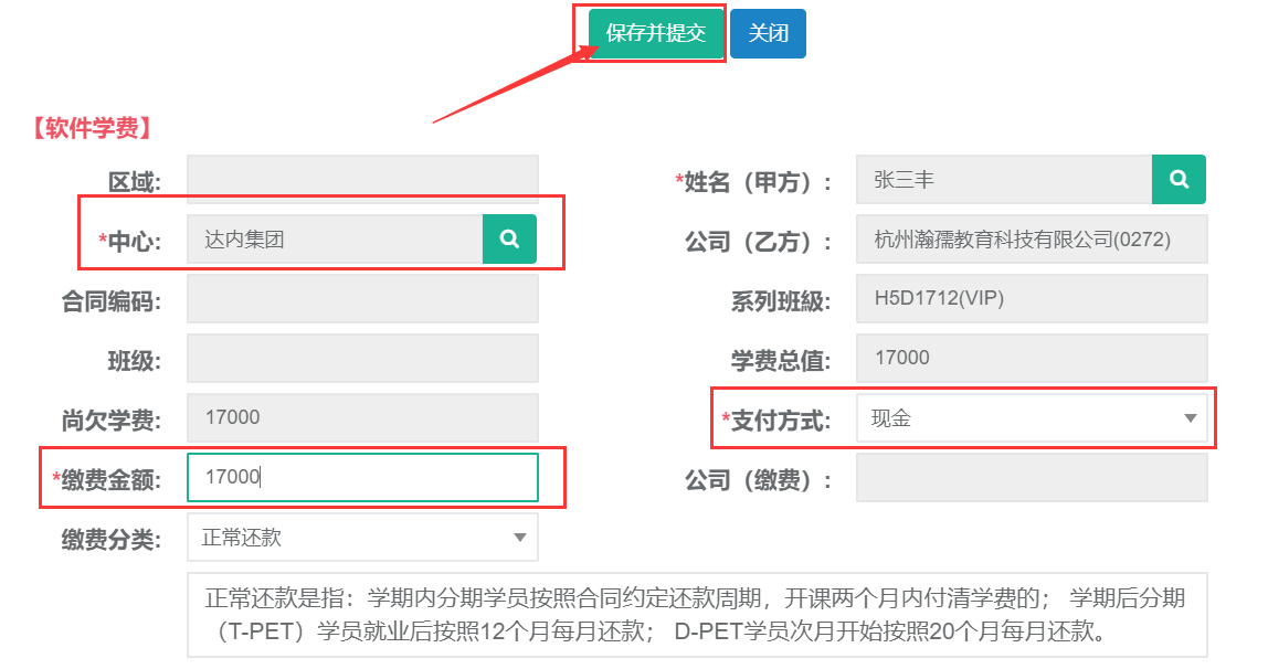 职业发展顾问核实学员是否有欠费情况,如有欠费需要求学员将学费补齐。