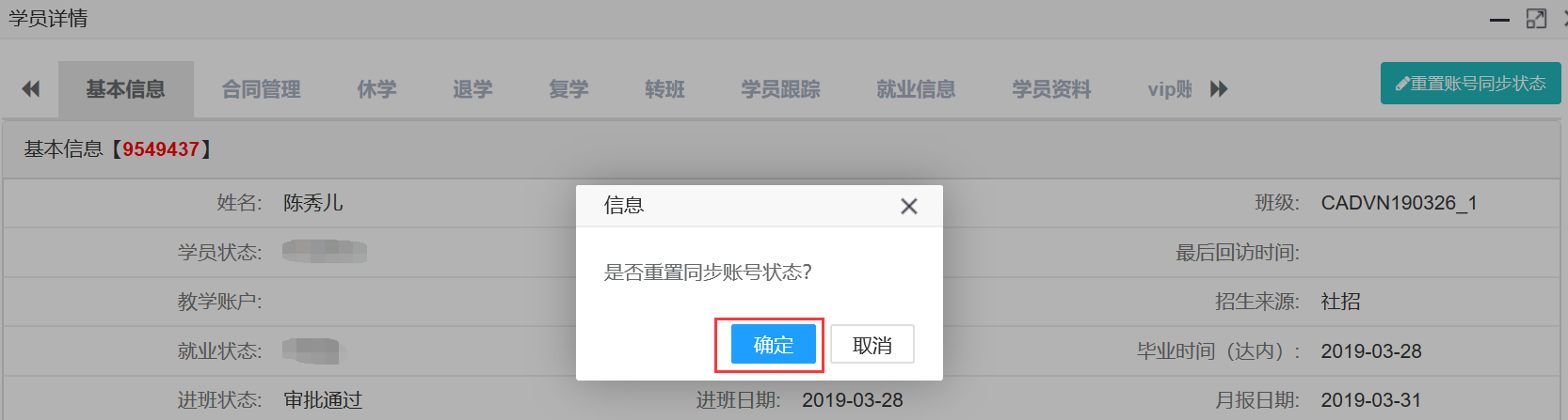如果学员缴费合规,职业发展顾问为学员办理跨中心转班手续