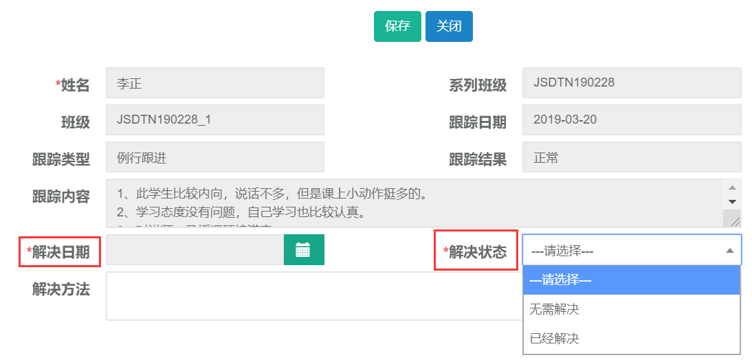 b) 职业发展顾问需向学员了解休学原因、预计复学日期。