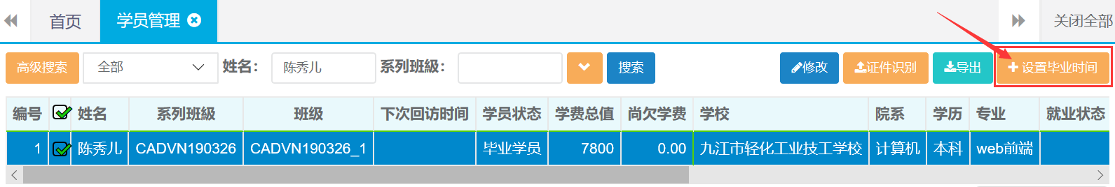 若学员进班且审批时间超过毕业前一天,系统自动驳回,并标注驳回原因为【该班级已毕业】 |