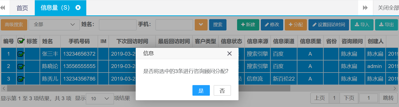 信息量录入的准确性、完整性,信息量分配的及时性。