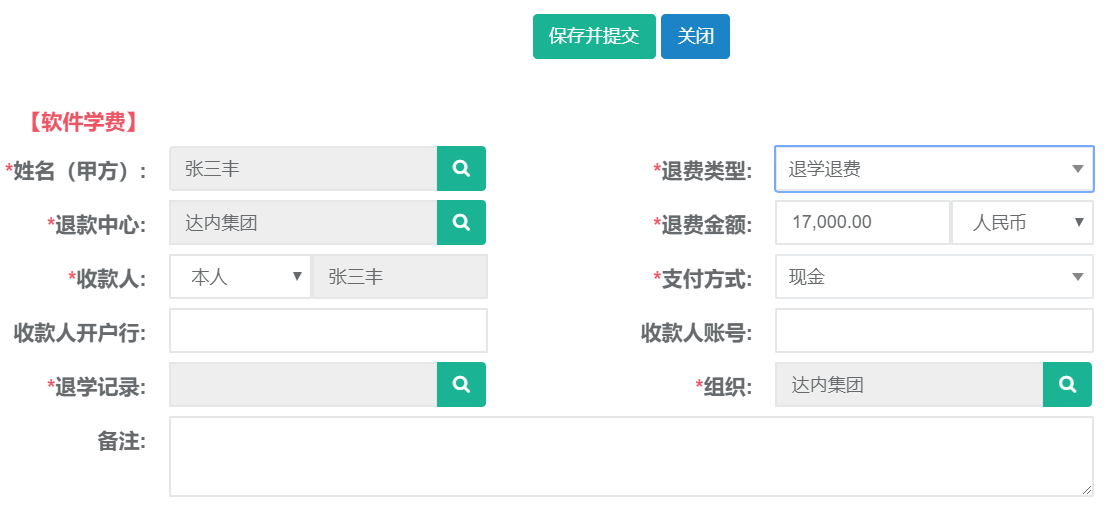 OA审批通过,职业发展顾问在CRM管理系统中选学员异动,进入退学申请模块,新建一个申请后,在系统中填写退学,如果涉及退费则待退学审批后进行退费操作;