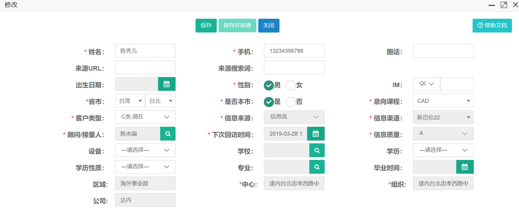 变更:所有已经开通成人CRM账号需要变更权限的老师可直接OA申请变更,具体操作流程请参照【成人CRM账号权限变更】。